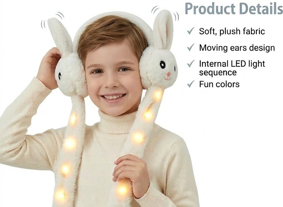 ودانة ارنب متحركة و مضيئة للأطفال | Rabbit Moving Ears & LED Glowing Plush Earmuffs