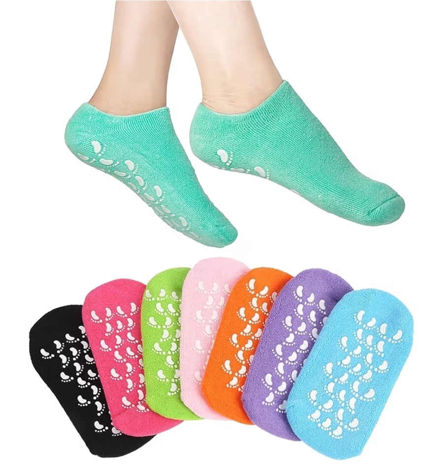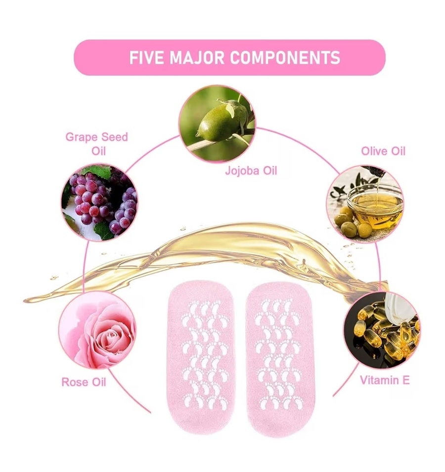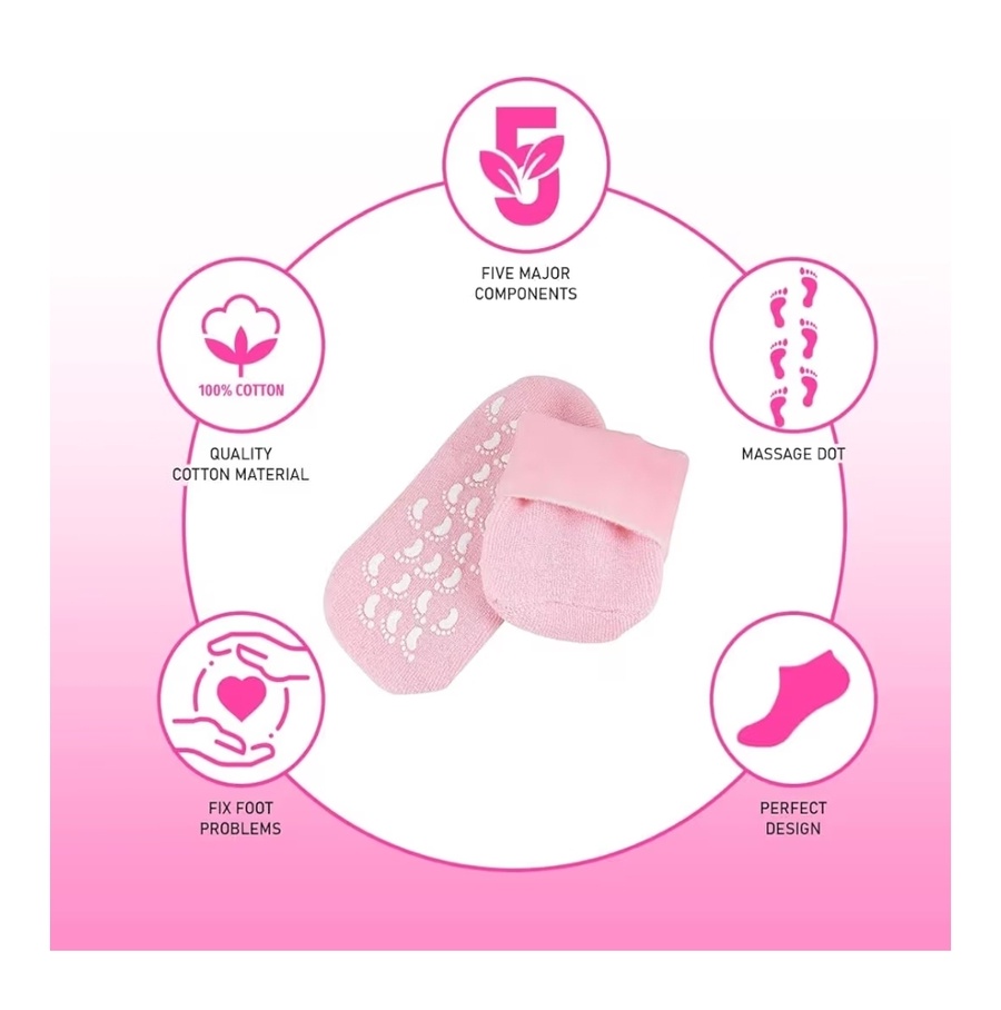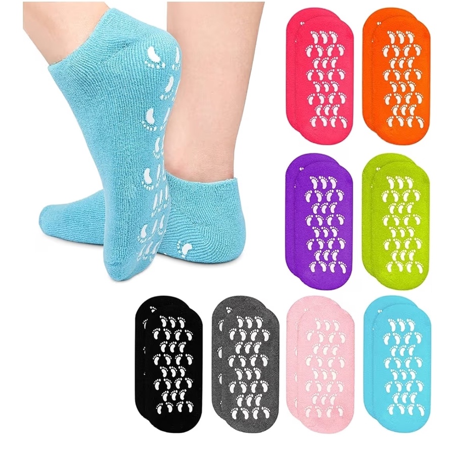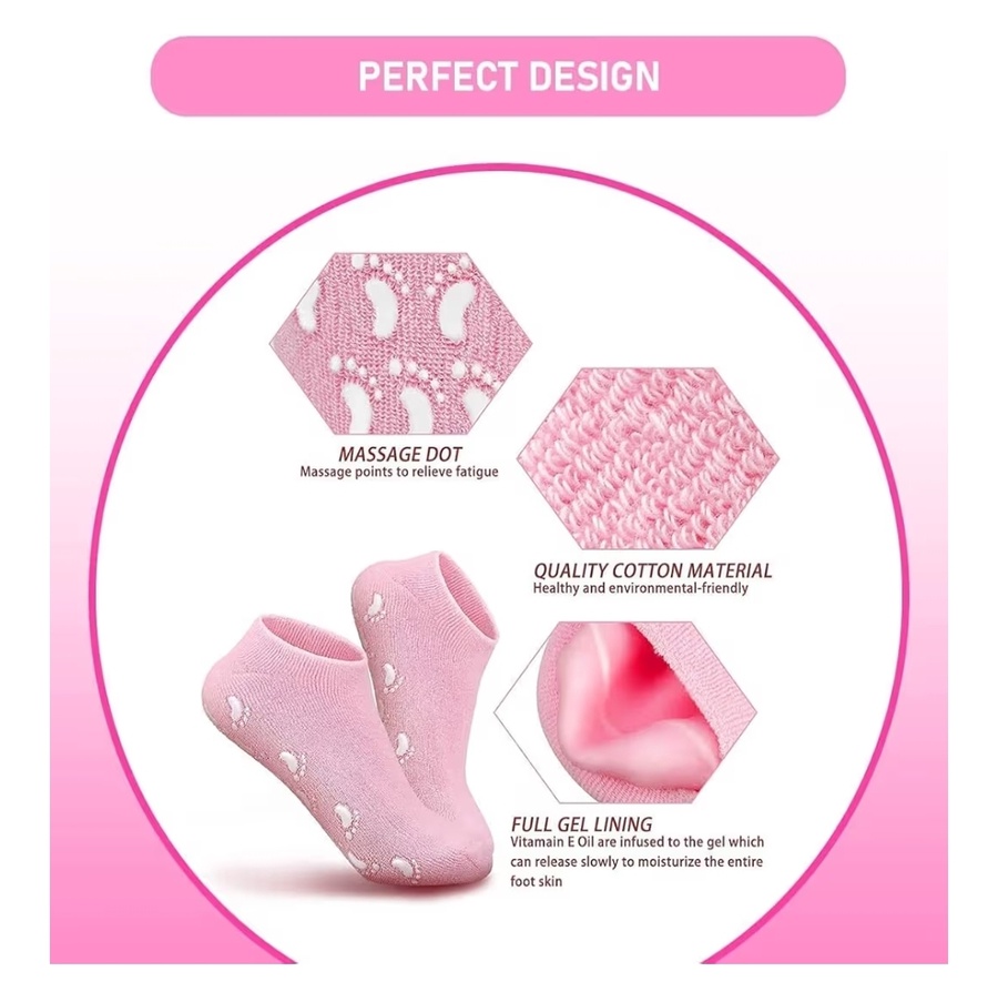 المواد المصنعة: مصنوعة من نسيج قطني ناعم وقابل للتنفس مع طبقة داخلية من "الجل" المرن الغني بالزيوت، ومزودة بنقاط سيليكون خارجية مانعة للانزلاق.