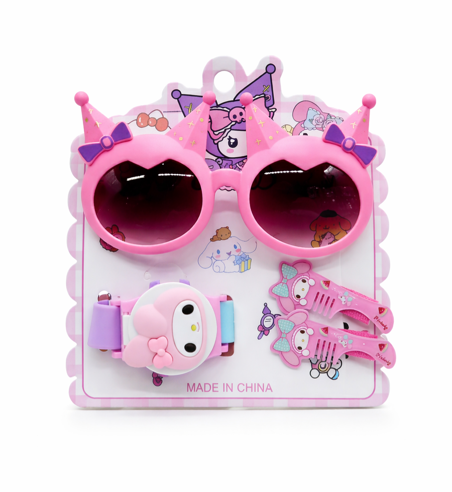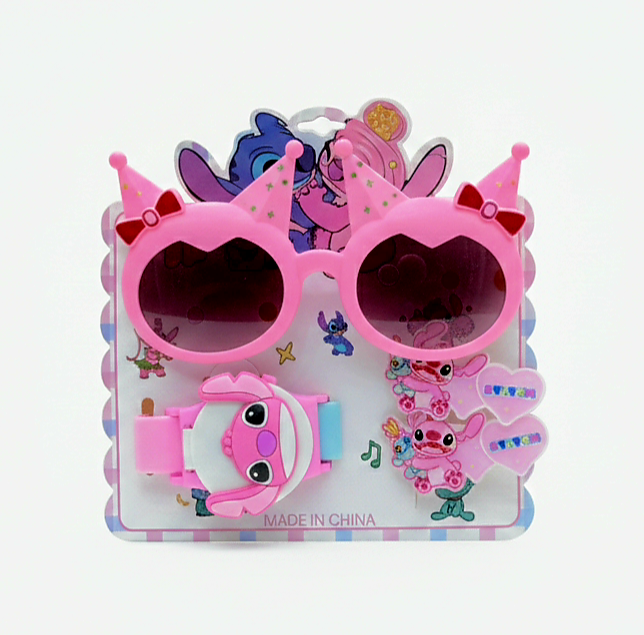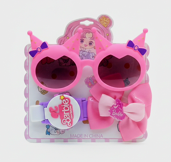 المادة المصنعة: المجموعة مصنوعة من البلاستيك عالي الجودة (ABS) الآمن للأطفال، مع سيليكون ناعم لسوار الساعة لضمان الراحة، وعدسات بلاستيكية خفيفة الوزن للنظارة.