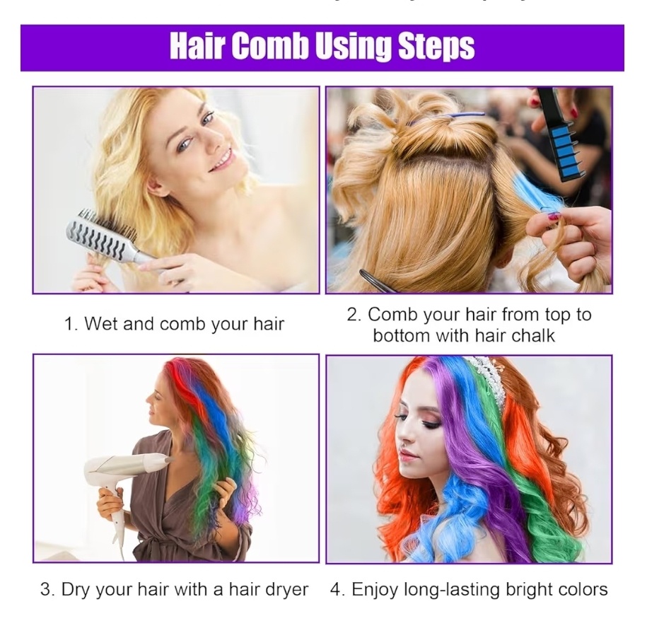 صبغة شعر مؤقتة وسهلة الغسل بـ 6 ألوان زاهية. جفاف سريع وبدون فوضى لتلوين خصلات الشعر بأمان وسهولة في المنزل.