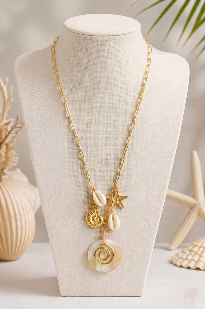 أضيفي لمسة بحرية أنيقة لإطلالتك مع عقد "أصداء المحيط". مصنوع من الفولاذ المقاوم للصدأ المتين ومزين بالقواقع. مثالي للمصيف. تسوقي الآن!