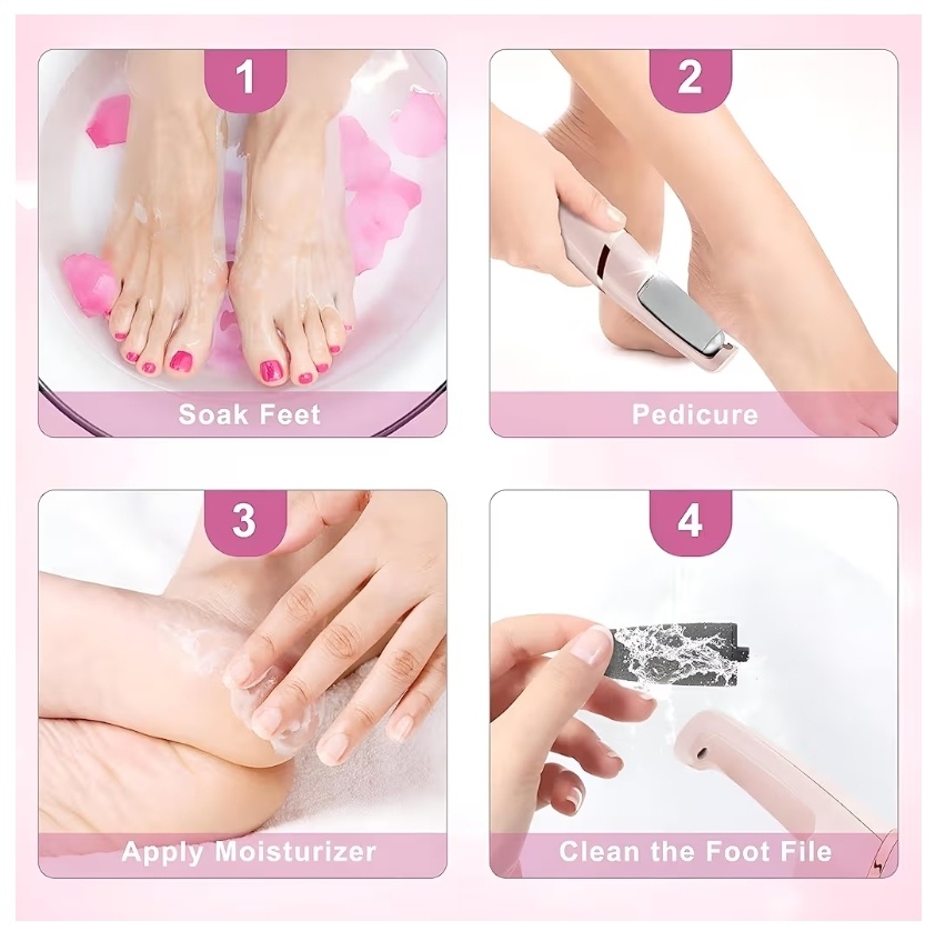 جهاز احترافي للعناية بالقدمين مصمم لإزالة الجلد الميت والكالوس بسهولة وأمان، مما يمنحك نتائج الصالونات في منزلك بفضل تصميمه المبتكر وسهل الوصول (Easy Reach).