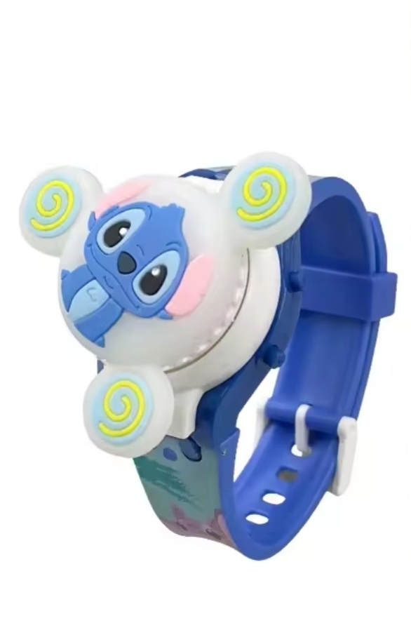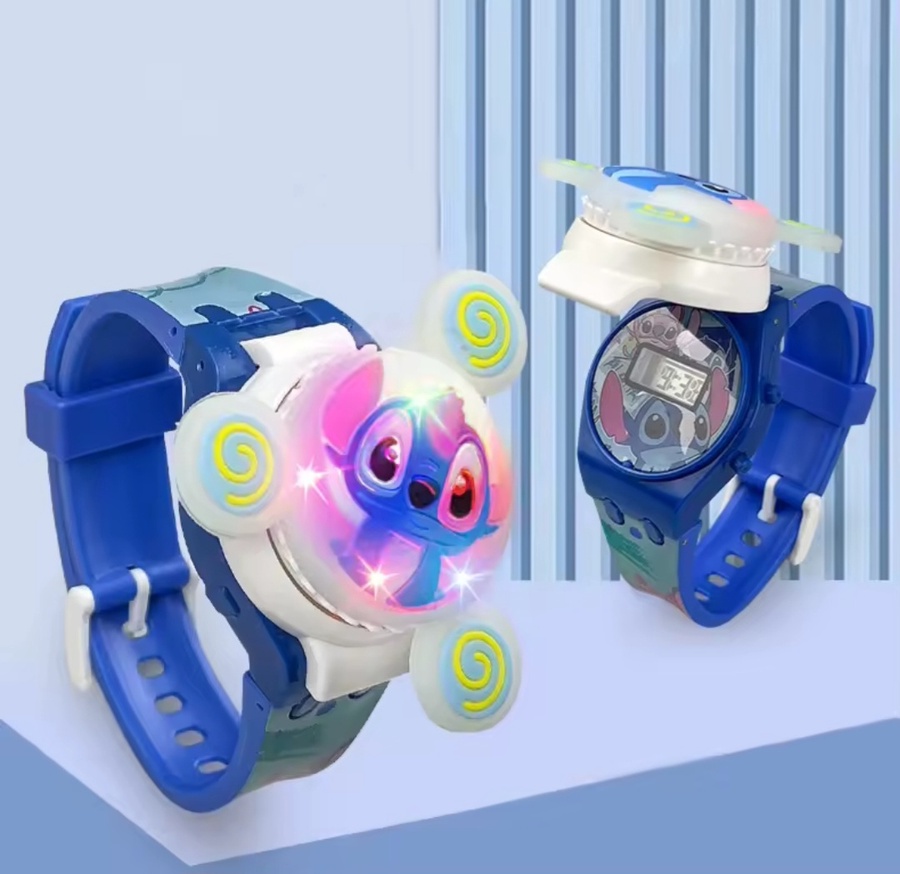 تصميم تفاعلي: تحتوي الساعة على غطاء علوي لشخصية "ستيتش" قابل للدوران يدوياً.