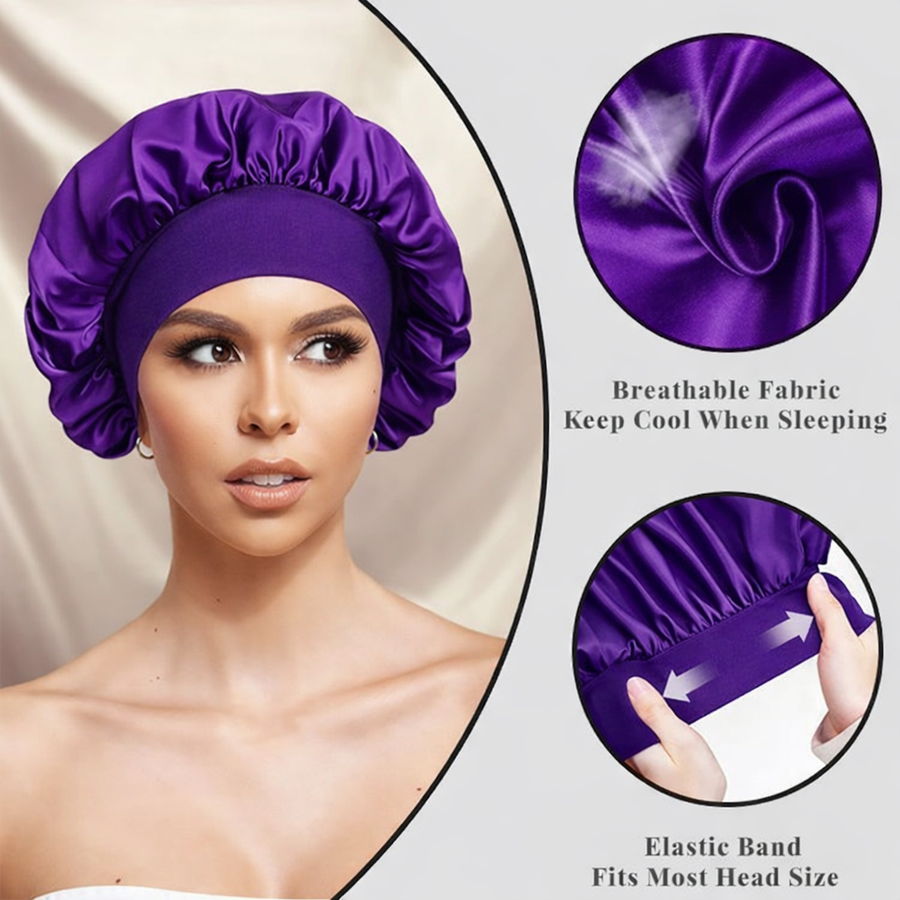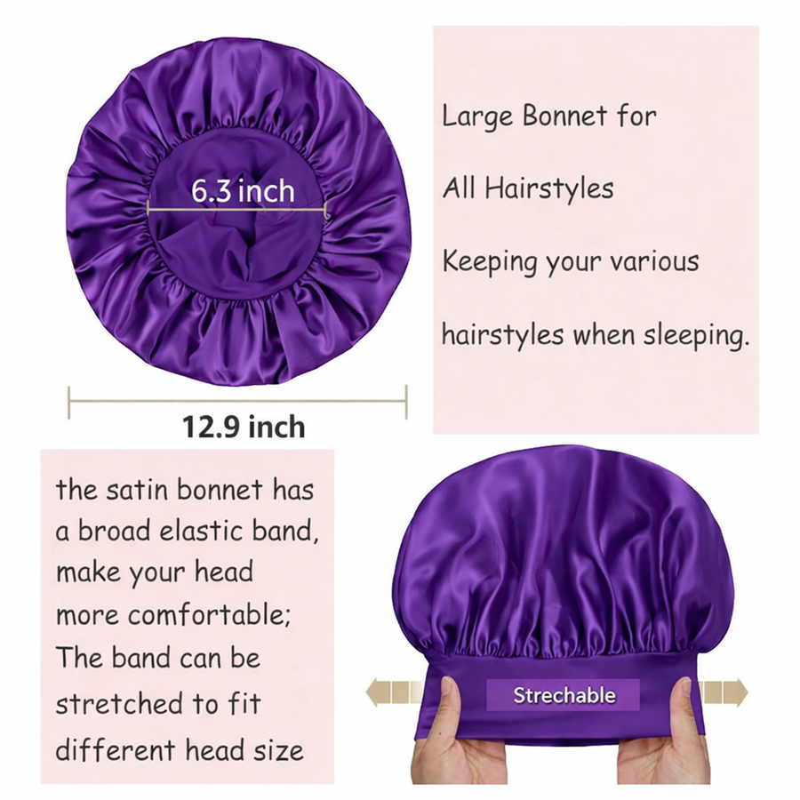 هذا البونيه المصنوع من الساتان عالي الجودة هو الرفيق المثالي لروتين العناية بشعرك أثناء النوم. صُمم خصيصاً ليمنحك الراحة القصوى مع الحفاظ على تسريحة شعرك وحمايته من التقصف والجفاف الناتج عن الاحتكاك بالوسائد القطنية التقليدية. يتميز بتصميم واسع (12.9 بوصة) ليحتوي جميع أنواع الشعر، سواء كان كيرلي، طويلاً، أو ضفائر