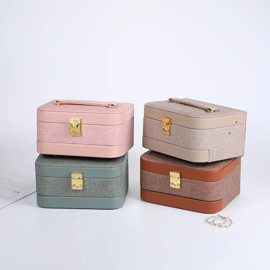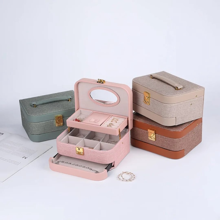 المميزات الإضافية: يحتوي على مرآة داخلية مدمجة في الغطاء لتسهيل ارتداء المجوهرات وتنسيقها في أي مكان.