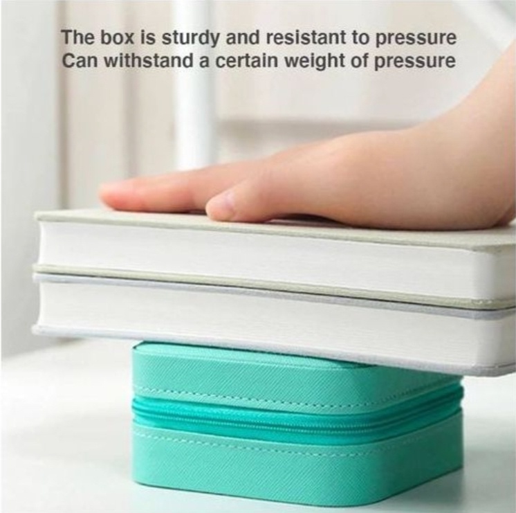 المتانة: هيكل صلب مقاوم للضغط (Sturdy and resistant to pressure) لحماية المجوهرات من السحق تحت وزن الكتب أو الأغراض الأخرى في الحقيبة.